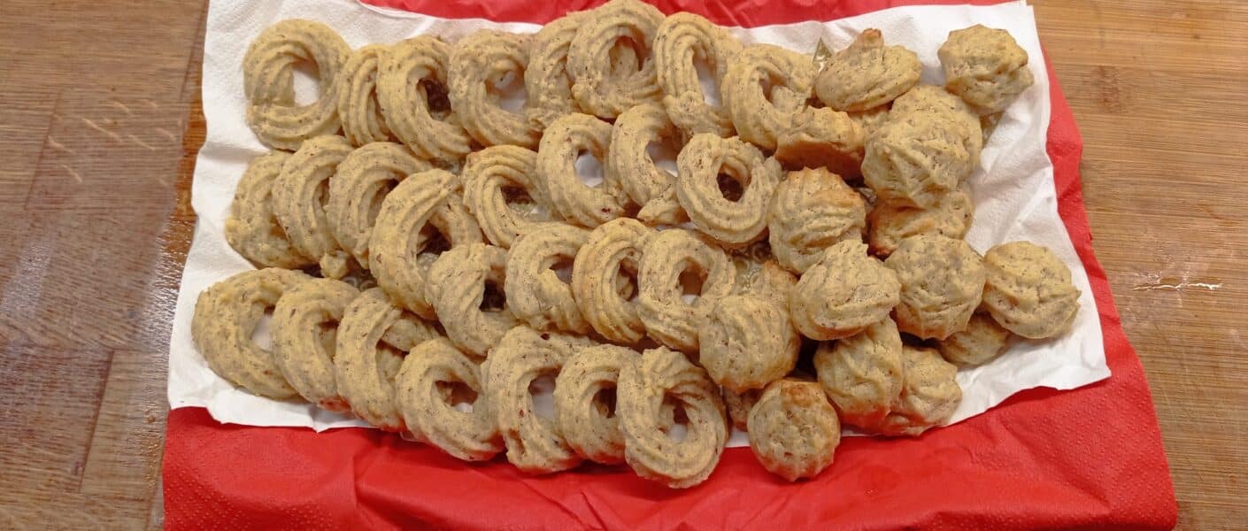 - mettre dans un cornet à douille étoilée et presser des formes à loisir sur une plaque avec un papier de cuisson.