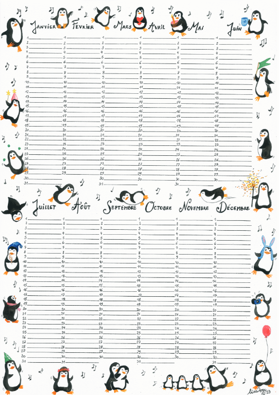 Calendriers perpétuels d'anniversaireCalendrier d’anniversaire Pingouins par Lisale 17 décembre 202517 décembre 2025Laisser un commentaire sur Calendrier d’anniversaire Pingouins 12 EUR + frais d’envoi
