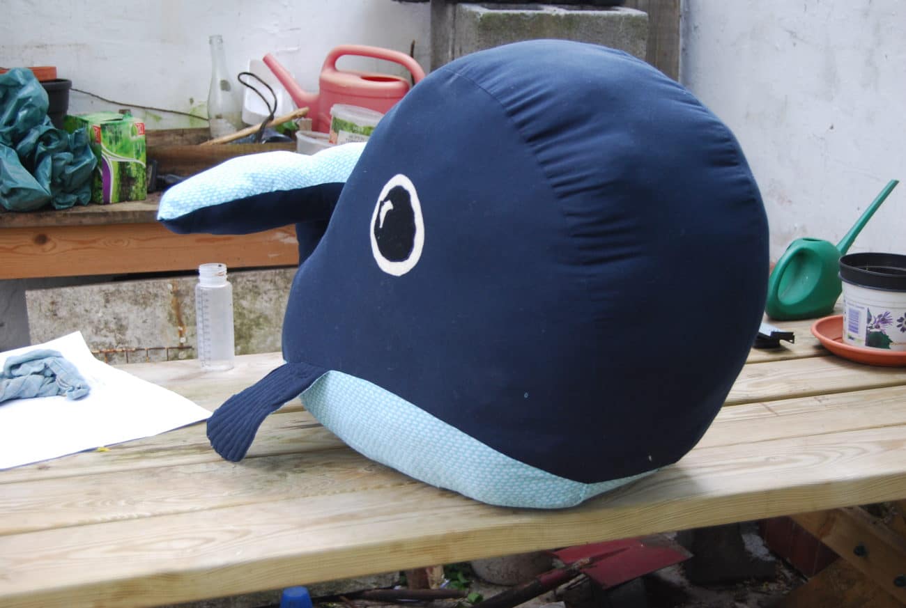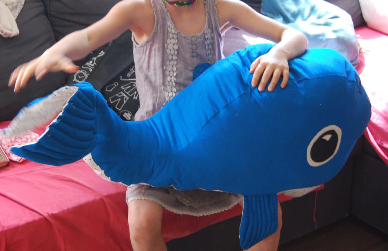 La petite baleine n’est pas si petite ! Comme un grand coussin, elle se laisse prendre dans les bras. Si vous voulez passez une commande, sachez qu’elles sont toutes uniques et coûte dans les 60 EUR