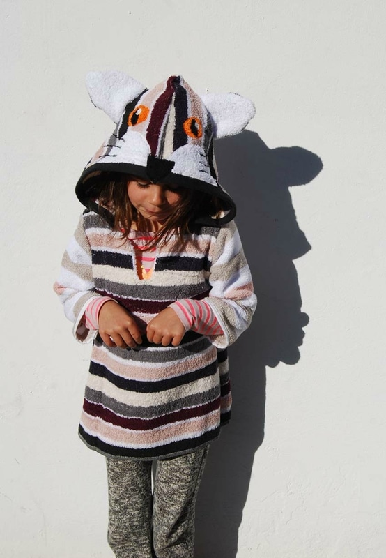Sortie de bain chat tigré réalisé sans patron, taille 2 ans. Tissu éponge. Modèle trop grand mais ça passe quand même