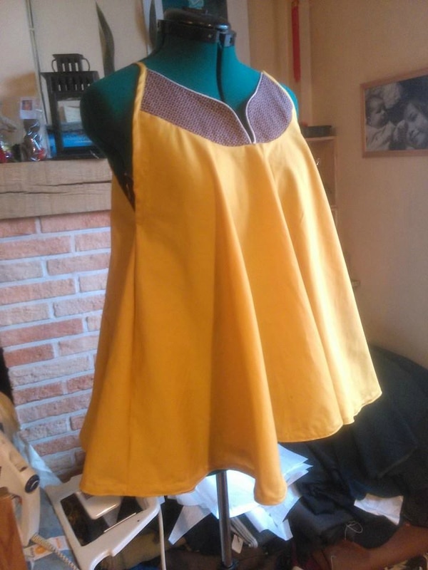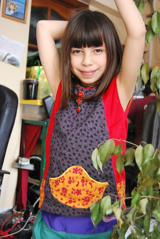 Et me voilà repartie dans la confection d’un petit ensemble ! La jupe comme vous pouvez la reconnaître est de « c’est dimanche » et le haut est inventé ! La jupe a été cousu avec ma belle sœur à qui j’ai montré les bases de la couture.