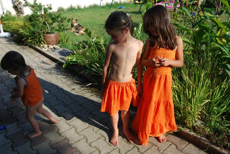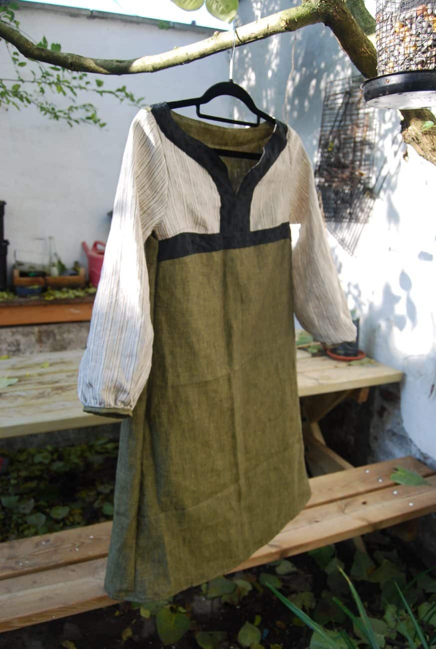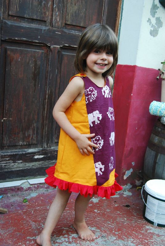 Voici une robe que j’ai cousu en deux étapes. J’ai cousu la robe et puis j’ai remarqué que celle ci était un peu trop courte. J’ai donc rajouté un volant par la suite comme vous pouvez le voir sur les photos ci dessous.
