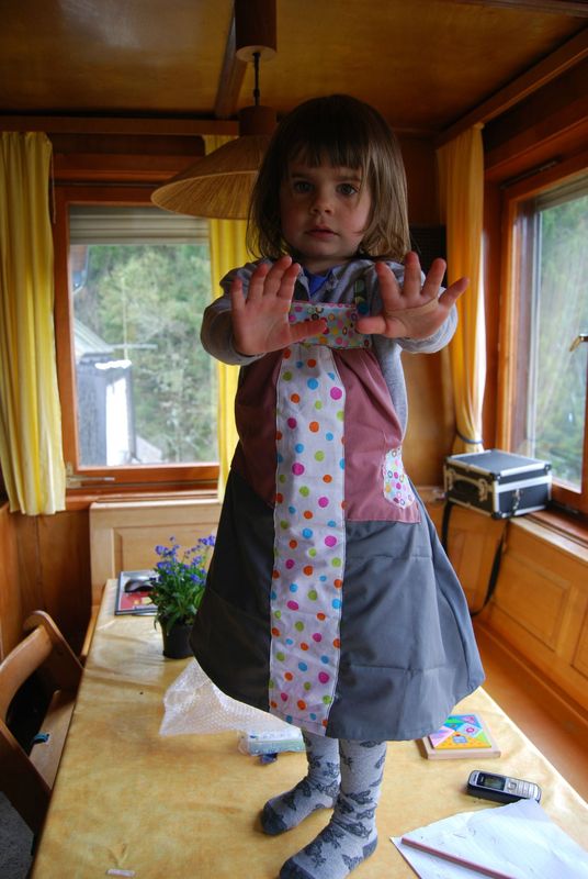 Robe pour une petite fille de 1 an, mais ne l’ayant pas encore vue, c’est ma fille de 4 ans qui la porte !