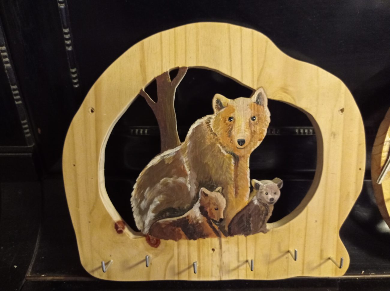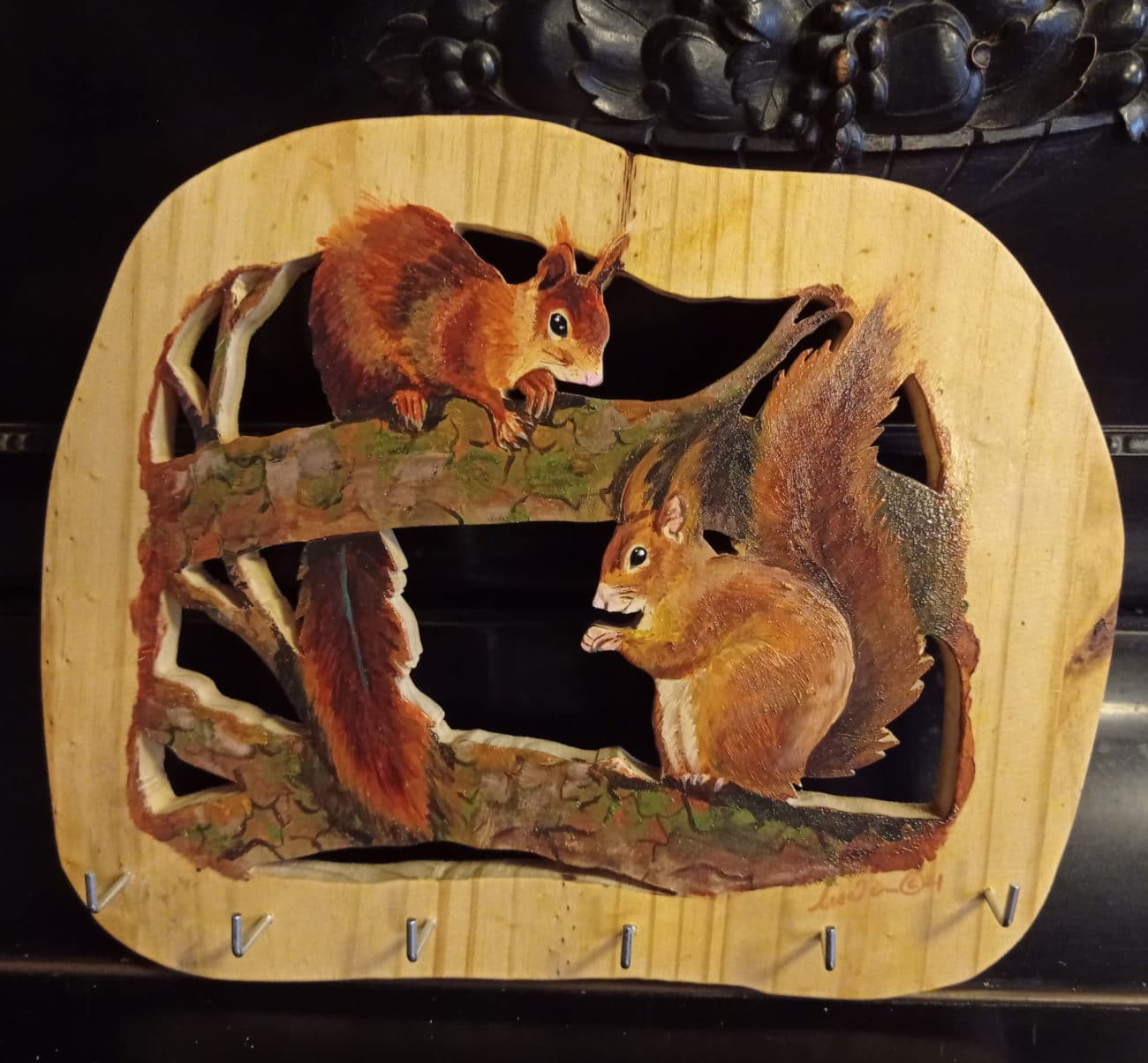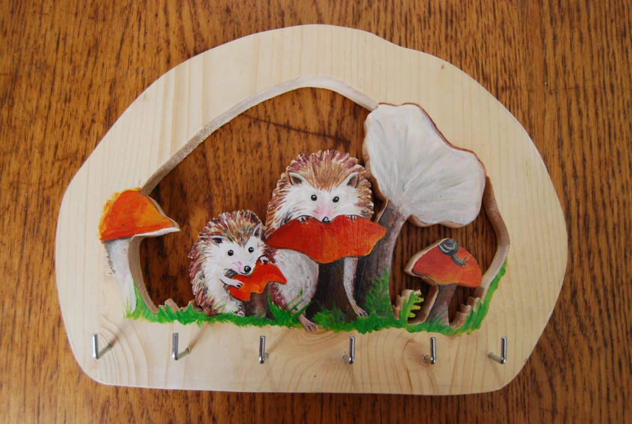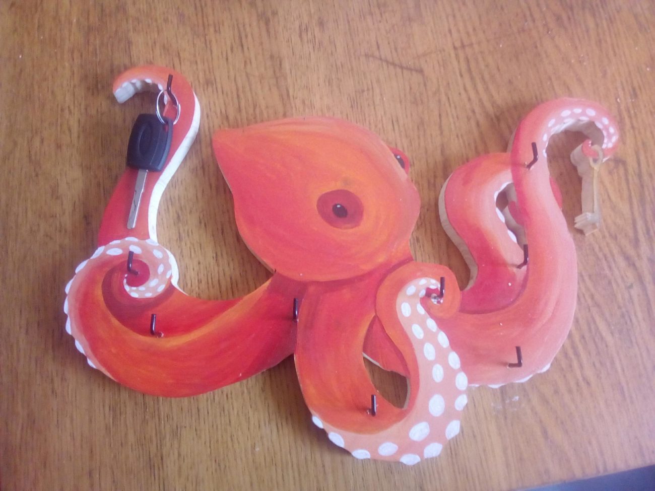 Voici le premier porte clé murale de toute une série !! J’ai découpé le bois avec une scie à chantourner et puis j’ai peint à l’acrylique