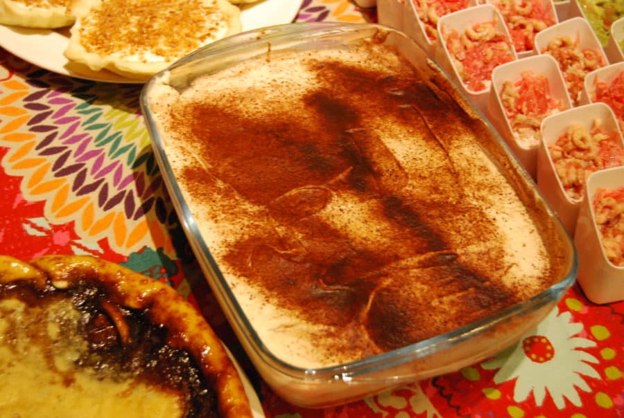 250gr de mascarpone – 3 œufs – 100gr de sucre – 1 bol de café noir – 2 paquets de boudoirs (+- 25 pièces) – 100gr de cacao amer – 1 sachet de sucre vanillé