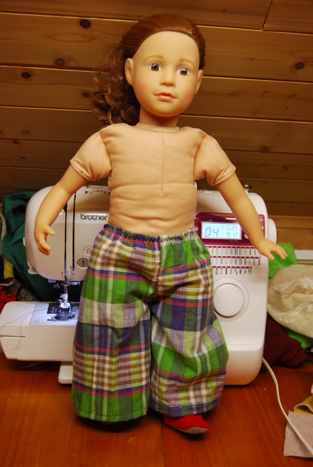 Voici un petit pantalon que j’ai inventé pour ma petite canaille. Mais celle ci ne veut pas le mettre…Donc pas de photo d’elle qui le porte. Peut être plus tard.